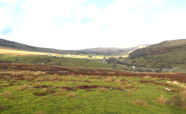 (B) A fine view of Calver, locally Calva, in front and Fremington edge behind and left.