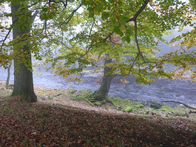 [3] Cross the road and continue on a footpath through the woods with the river on your right. On emerging into fields, keep on the river bank.