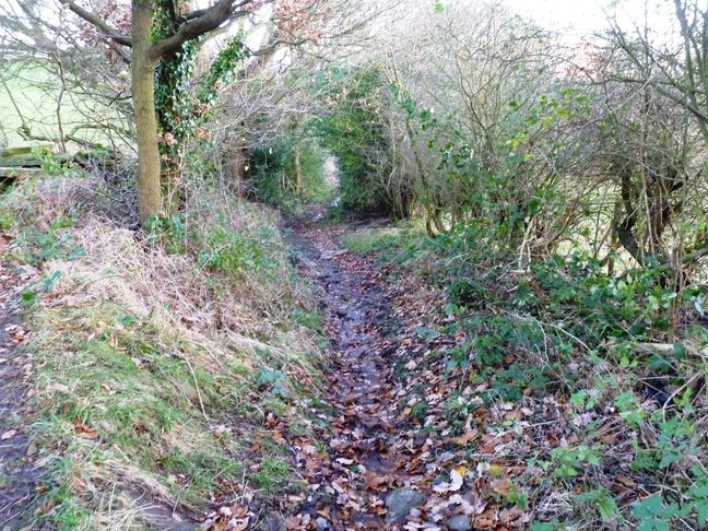 The cobbles and causey stones which can be seen in one or two places at the side of the Scrog indicate that this was once a fairly important route. Soon after leaving Houses Hill the lane passes through a small wood called Hobson's Scrog and here it is bordered by woodland plants such as bluebells, bracken and dog's mercury. The hedgerow is well established with hawthorn, holly, wild rose and elder amongst the species represented and there are many mature trees, oak, sycamore, ash and hazel being among the most common. The lane itself can be muddy and sometimes difficult to negotiate but it is a fine example of an ancient path and the walker who attempts it will be well rewarded by its natural beauties.