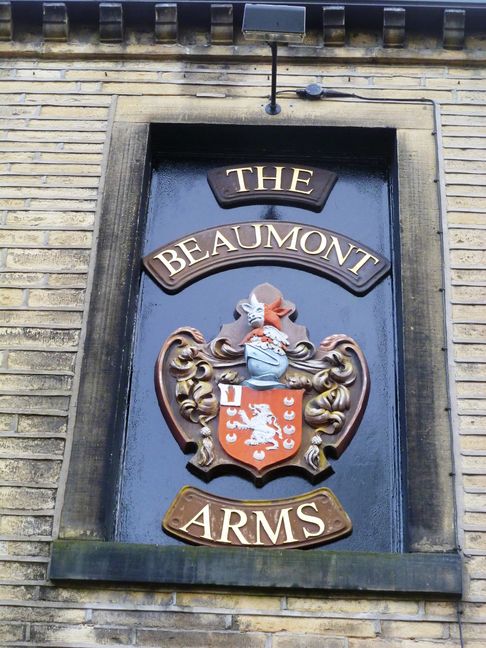 The question of when the name Kirk Stile was changed to the Beaumont Arms has not been satisfactorily answered, but it is assumed that at some time one of the Landlords made the change as a compliment to the Beaumonts of Whitley Beaumont Hall who were Lords of the Manor. The Beaumont Coat of Arms was painted on the outer wall of the inn in the early years of the 19th century by a local artist named Paul Holliday Stancliffe. The painting faded over the years but could still be made out in outline until it was painted out and replaced in 1983 with a smaller three dimensional representation. For those readers interested in heraldry the blazoning of the Beaumont Coat of Arms is: Gules a lion rampant argent langued and armed with an orle of crescents argent.