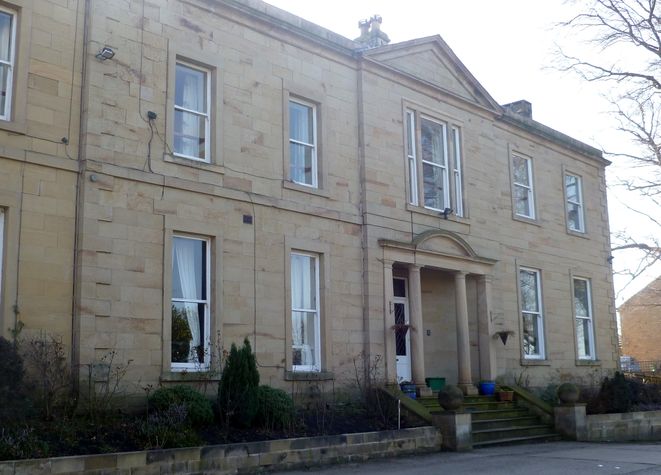 (A) LASCELLES HALL (see photo) is now The Flowers Hall Care Home and its outbuildings have been converted into cottages. The mansion dates from the late 18th century replacing an earlier Lascelles Hall built on the same site. The Lascelles family had settled in the area in medieval times, but the question of exactly where is confused by the fact that early in the 17th century another Lascelles Hall was built by John Ramsden and the two known as Old Lascelles Hall and Lascelles Hall existed concurrently, one on the site of the present Hall and one in the Laygarth (see Walk No. 6). There are many references to Lascelles Hall in early documents and both houses are shown on the 1780 map of the area but it is not as yet possible to say with any certainty which was the original medieval settlement. However, Leigh Tolson writing in 1925, favours the site of the present mansion and from the evidence of the old cellars postulates an H shaped timber framed house as the original home of the Lascelles family.