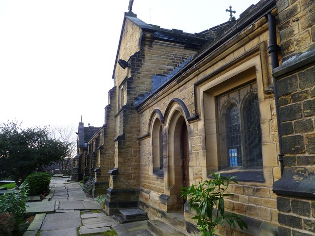 On the path can be seen the stone commemorating three of the children of Abraham Sheard (Levi's son), including Levi's namesake, who all died in infancy or childhood. In many areas of the graveyard family stones lie side by side recording the deaths of several generations of the same family. Two former landlords of the Kirk Stile lie in the shadow of the place where they lived and worked.