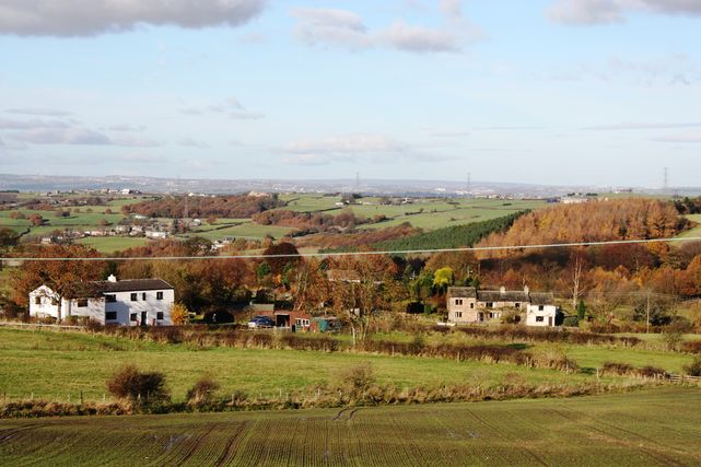 At the end of the cottages stand and look over the fields to the right towards what was once Lodge Mill Colliery, though little trace of it survives (see photo of Lodge Mill Farm). Coal has been mined in Lepton for over six hundred years. A coroner's report for 1357 shows that: "John Long of Lepton was accidentally killed by falling into a colpyte". In 1532 tenants were forbidden to sell coal outside the Manor and penalties for those offending were "12 pence for a wagon load and 2 pence for a horse burden". There are the remains of many small coal pits and day holes in the area but with the sinking of mine shafts the operations took on a more commercial aspect. Lodge Mill Colliery was owned by Benjamin Elliott and Sons Ltd., who also owned Fenay Bridge brickworks. In 1906 a tramway brought the coals across the fields to a terminus just above the junction of Botany Lane with Addlecroft Lane. By 1929 this was extended to include an aerial ropeway which cut across the fields and over the brow of the hill to coal chutes in Wakefield Road above Cowms, where Elliotts brickworks took a large supply of coal for use in the brick kilns. The supply from the pit was augmented by the coal from a day hole close by Rods Cottage. A writer in the 'Huddersfield Examiner' in 1930 tells also of trucks running down from the Temple to the pit which were there turned and sent off with the rest.