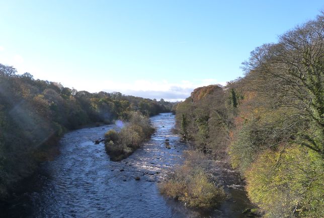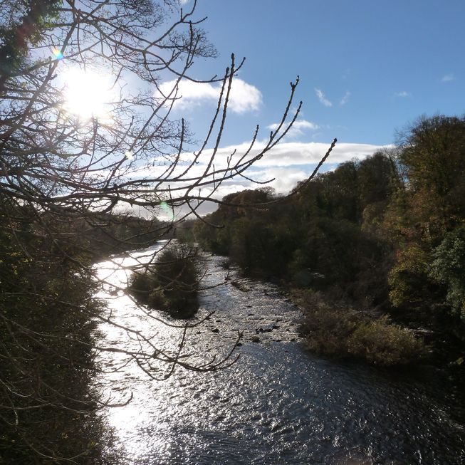 Turn right through a gate and go along a path with the churchyard on your left. Follow this path as it goes steeply downhill turning right to a gate into a wooded area on your left. Go through this and follow a boardwalk to reach the riverside path.