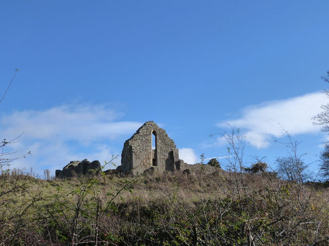 Turn right and follow the track until it reaches the ruins of St Lawrence's chapel
