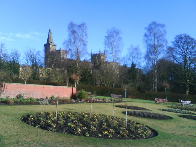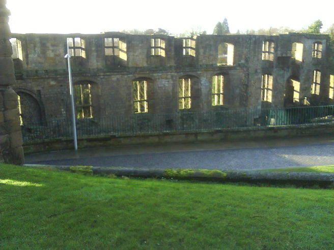 Cross the road, go up the steps and take the path on the right and view the ruins of Dunfermline Palace to the right.