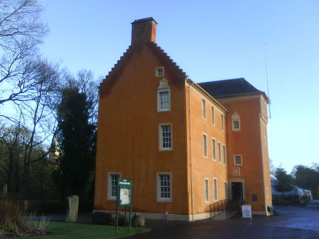 At the path junction near the Peacock Rooms, turn right and head down the slope. The path bears left. At a path fork, take the left path and head up the slope following a chain link fence on your right. Take the second left path into the formal gardens and head for the orange building, the 17th century Pittencrieff House and Museum.