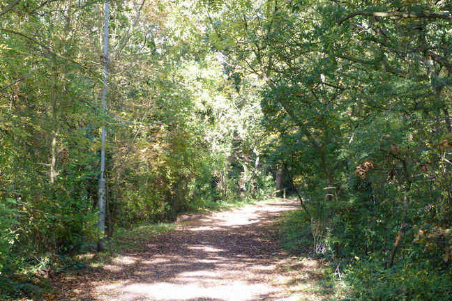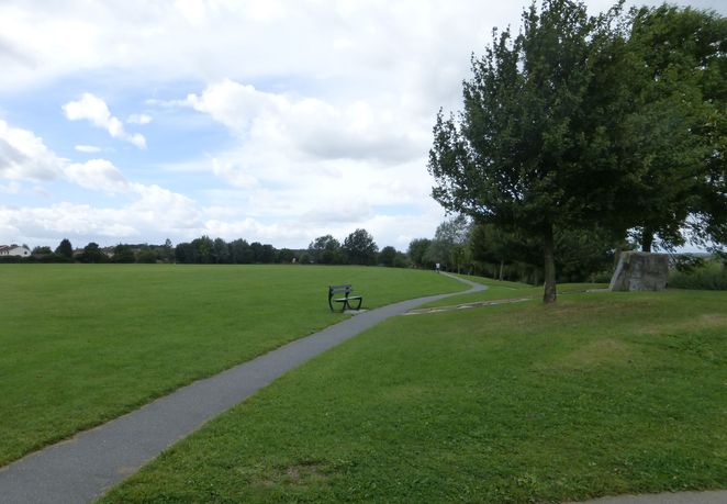 [4] Cross over Laundon Way at the pedestrian crossing just beyond the supermarket. Take the path going straight across a grassy area. Ignore a cross path after 10 metres and continue to the road at the far end. Turn left along the road, Kings Way, and continue to the end. Turn right onto Lime Avenue and continue to the end. Cross Laundon Way. (Cross with care as there is no crossing provided.) Turn left and then almost immediately right onto Garendon Way. After a few metres turn left into Warrington Drive, at the end go through a gap, turn right onto the old mineral railway line and continue forward. Cross over Spinney Close and turn right along the next road, Oaktree Close. Turn left at the end and follow the road round to the right onto Glebe Road.