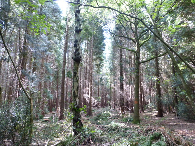 [2  Turn next right onto Woodlands Drive, continue to the end and keep on down the path between houses 71 and 73. ]  At the end turn left onto a muddy path and go a few metres to a kissing gate into Martinshaw Wood  Shortly afterwards the path curves left and other paths go off to the right. Follow the path straight ahead, past where a wide roadway goes through the trees on the right, following  the waymarks. Ignore minor paths to the right and left. You reach another kissing gate.