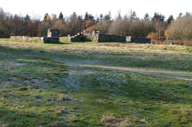 [1] Leave the car park past the racecourse description board and take the track heading in a WSW direction. After a couple of minutes walking you will come to the ruins of the grandstand and the track of the racecourse (A). The hilltop formed the Oswestry racecourse where the English and Welsh squirearchy held an annual race week from early in the 1700s until 1848. Before the races the road that separated the north and south commons was barred to stop carriages and other vehicles from interfering with the running. Turf was laid over the road surface to prevent the horses from slipping. Most of the famous families from the Oswestry area were involved in the races during the racecourse’s history, including ‘Mad Jack Mytton’. The main event was the Sir Watkins William Wynn Cup. The race was normally two circuits of the figure of eight course (4 miles). This was accompanied by ‘much drinking, betting, begging and picking of pockets’. The race week included many other social events in and around Oswestry. Spectators sat in the grandstand, the remains of which can be seen on this walk, or on the banks that surrounded the track.