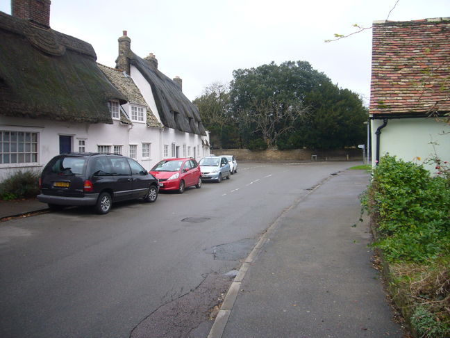 [1] From Grantchester Mill (photo 1) take the path along the side of the mill pond and down a narrow passage beside the Old Vicarage. Just beyond the Old Vicarage turn into the Orchard Tea Garden car park (photo 2).