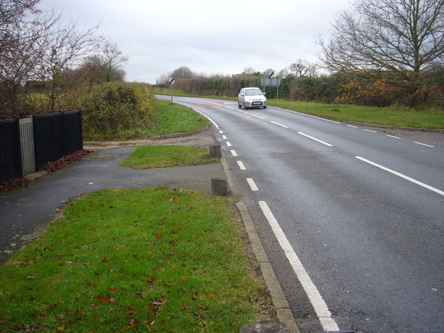 Walk through the Orchard to the High Street. Pass the church and continue to the road junction and turn left into Coton Road (photo 3). Walk along Coton Road for about 600 metres to the gate and footpath sign. (photo 4) Safety note - The Coton Road pavement stops about 100 metres from way-point 2. Walkers are advised to cross the road at this point to face oncoming traffic, and to be ready to step onto the rough verge to avoid traffic.