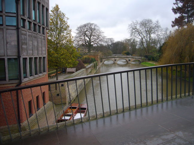 [7] Turn left down Senate House Passage, and right and then left passed Trinity Hall College, over Garret Hostel Bridge to Queens Road.