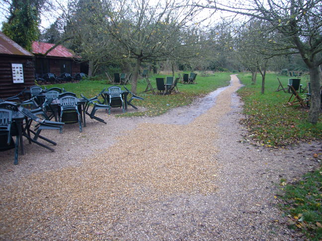 Bear right, as indicated by the map, until reaching the Grantchester Road. Turn right along this road for about 75 metres and left into the St Catharines College playing fields car park. (This was closed on day of review)