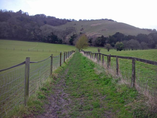 [2] On reaching the foot of the scarp slope, you enter woodland and turn left along the footpath. soon joining the North Downs Way. Keep straight ahead and then stay on the path at the foot of the slope and on the edge of woodland, now following the North Downs Way signs. Note: Though the route is generally well signed, some way-marks/signposts are missing, so it’s worth paying attention to an OS map so you always know where you are.