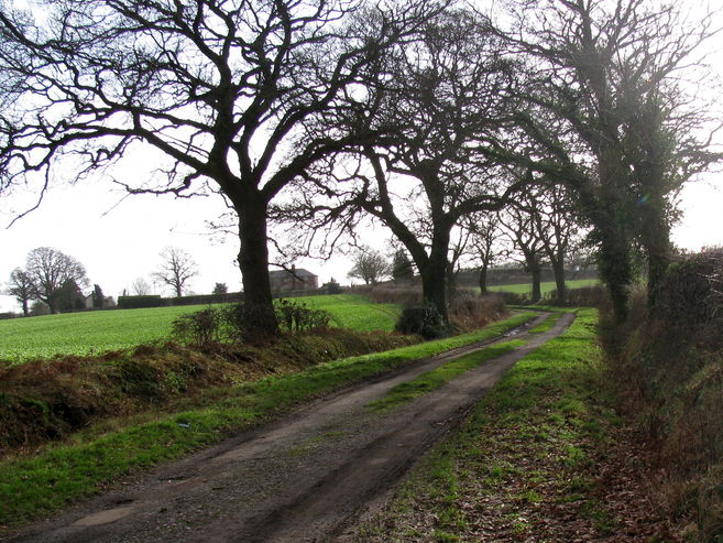 [5] At the crossroads, turn right to follow Riley lane to the oblique crossroads with the Knightley Road. Cross the Knightley Road and follow the pavement on the right hand side of Dicky's Lane until it is safe to cross to the pavement on the left. Follow Dickey's Lane back to the starting point. Take great care crossing the main road.