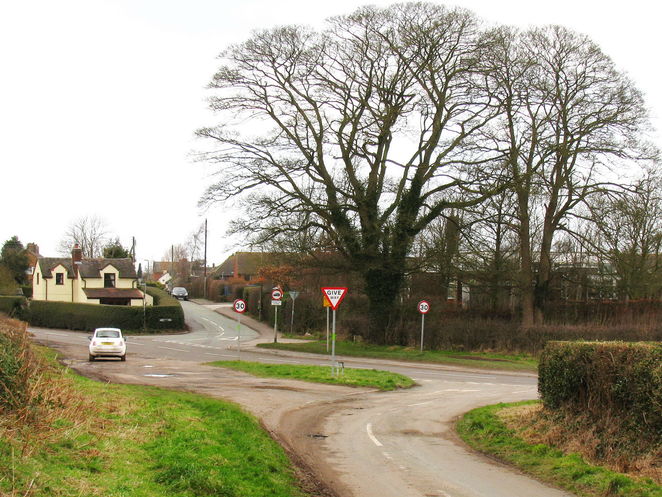 • The oblique crossroads looking across the Knightley Road from Riley Lane into Dicky