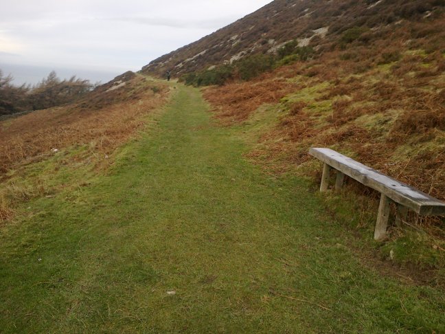 [3] Go through the stone pillars and follow the largely level footpath as it goes around Foel Lus. From here there are extensive views  towards Llandudno, Conwy Mountain and beyond. Continue until you reach the signpost indicating that you have been following the Wales Coast Path
