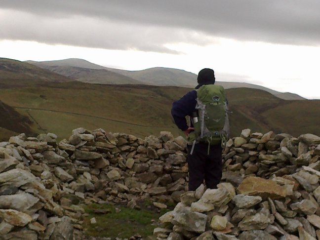 This is also the point where the alternative path to the summit leaves the main route. Turn right up hill to the next electricity/telegraph pole and then take the fainter path right to the summit. Leave the summit by the broad path, turn right where it meets a track and follow to [5].