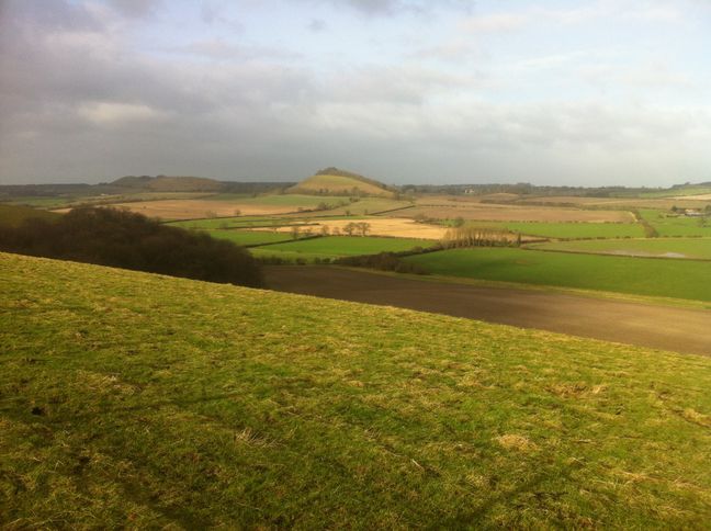 [14] Follow the path through fields and along past Zeals Knoll on your right, across the A303 bridge and up left to crest Long Hill. Descend slightly at the end, then up Castle Hill for great views over Mere. Descend the steep hill carefully from middle, back into the town. Turn left at the main street and go past the clock-tower to reach the car park again.