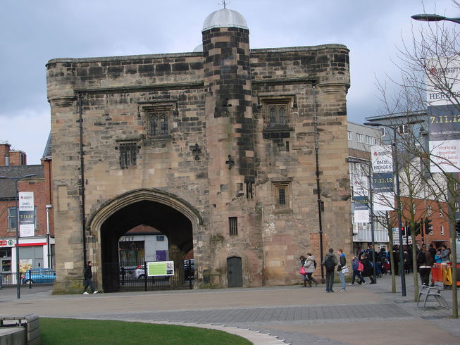 (B) You are entering the Newarke ("New Work") which was a religious precinct laid out in the fourteenth century. There were two gateways to the precinct originally but only one survives, that is the Magazine Gateway which you can see on your left, built in 1410.
