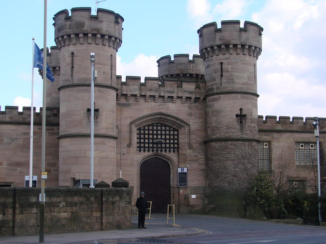 (J) Leicester Prison is often mistaken for Leicester Castle with its portcullis and sturdy towers. It was built as a prison in 1825.