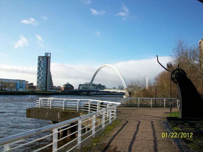 [5] Cross Bell bridge to the other side of the river. You will see the science centre and the BBC Scotland building on the right and the ITV building on your left.