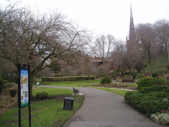 (C) This area is a scheduled monument encompassing the Castle Gateway, Castle Hall, Turret Gateway and the Magazine Gateway among others. Castle Gardens was opened in 1926 and the 4 acre site has a rock garden, mixed borders, two small ponds and a waterfall .