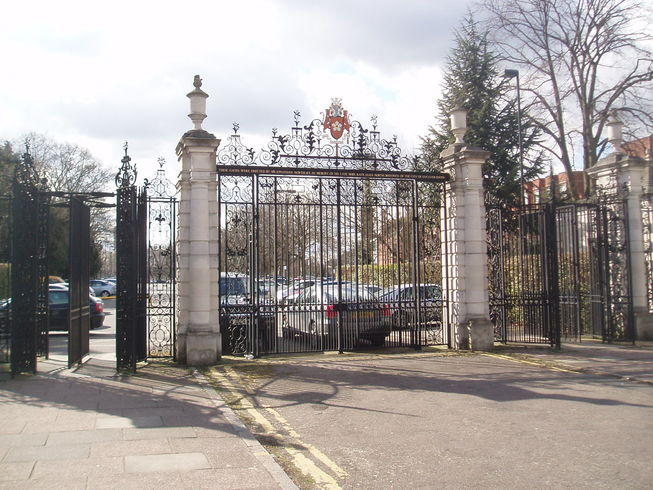 [5] At the Hall keep straight on through the gates into Victoria Park and take the footpath diagonally to the left to the War Memorial (C). Shortly after this turn left and left again and follow the path past the tennis courts to the Monument to the 82nd Airborne Division (D) then past the pavilion and bowling greens. Turn right at the car park and exit the park through the ornate iron gates, by the Park Office.