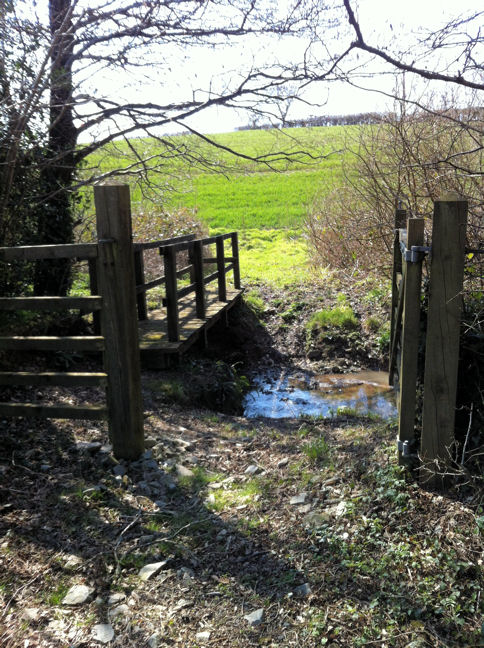 On the road turn right and follow the road over a stream (Latchbrook Leat) past a signposted Public Bridleway and Public Footpath.
