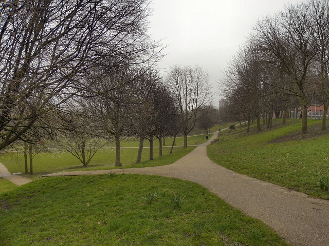 Continue along Collyhurst Road and you will soon come to another green space with a path to the leftleading up into it.