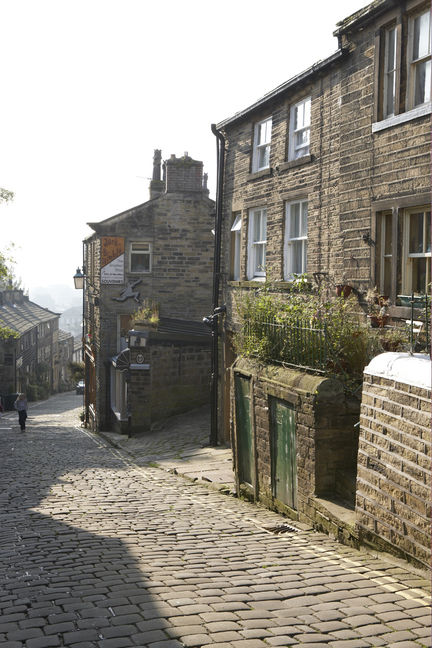 [5] Turn right and take the first left up Old Oxenhope Lane. At the bend turn right (signposted), through a stile by the side of the farm gate and follow the wall left. Continue to field junctions, and go ahead but with the wall now on your right. Go ahead through a narrow gate at the end and follow the narrow (overgrown) path around the back of houses and cross a lane. Follow the path ahead through two fields. Turn right through the gate at the end onto an old stone walled path around Sowdens Farm. This brings you back to the path where you began. Retrace your steps to St Michaels Church.