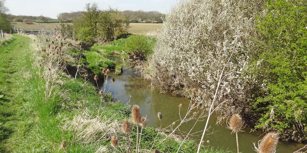 Where the road turns left take a footpath that carries straight on over a stile and beside a hedge. After 100 metres look out for a stile where the footpath crosses to the left hand side of the hedge. Walk along the left side of the hedge to a gateway into the next field and then head diagonally left over the grassy field towards the church spire. Go through a line of small trees and continue diagonally left to reach a kissing gate in the far left corner of the field. You have a view of Grandborough Mill, which operated until about 1920. It is now a private residence. Go out onto the road and turn right. Follow the road into Grandborough village. The road crosses two bridges, over the River Leam and a backwater. The low lying area is subject to flooding.