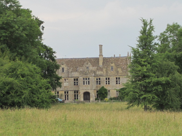 [6] Walk with the hedge boundary on the left, looking for a stile on left as you lose height. Cross into another field and follow the waymark to reach a stone stile on the far side. Climb this and continue in the same direction to the top right corner and a further stile. Beyond here, go ahead on a grassy path with hedge to your right. Pass through a gap in the wall at the field corner, proceed to a stone stile in the next corner, then go ahead to an obvious wooden one. Now continue in the same direction to reach a tarmac drive with the fine Elmestree House away to the left. Cross the drive and aim towards the left end of the woodland ahead, but before reaching the trees, look half-right to the white painted buildings in the distance that belong to the Highgrove estate. The thick, Tuscan columns, just visible are part of the ‘Orchard Room’, built in 1998 of Cotswold stone and featuring a stone roof. This provides Prince Charles with a permanent venue for receptions and parties.