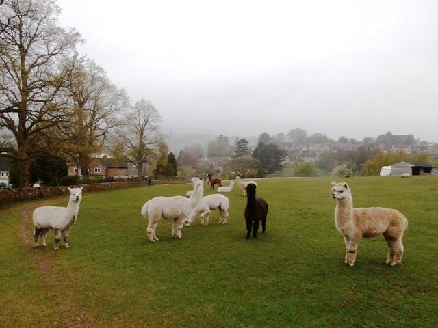 [4] Continue down the field on the obvious path to the left of the fenced wood. Pass this wood and then another fenced wood, both on your right. At the end of the second wood, head for the left of the church spire, just to the left of the well worn path. Continue along this line and pass a small group of trees on your left. When the gardens at the edge of the village come into view, head for the metal gate to the right of the small electricity substation. Go through the metal gate down steps to the road. Caution – the steps are steep. Turn right down hill into the picturesque village of Edensor.