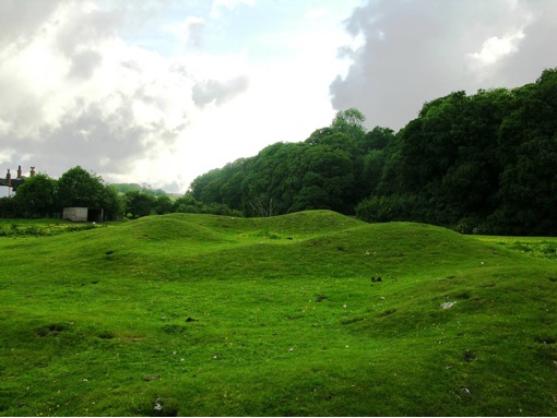 (G) Beesby, listed in the 1086 Domesday Book as Basebi, is a Scheduled Ancient Monument now given over to pasture. By 1450 the village had merged with Hawerby and the shrinkage continued when in the mid 1500s there were only 7 families recorded as resident. The earthworks include a clear hollow way snaking through an area containing tofts and crofts, bounded by banks and ditches up to 1m deep. The site is bisected by a farmhouse and in the further section, the earthworks of a church within a rectangular enclosure are visible.