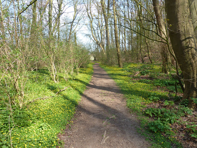 (A) Notice the blue and gold waymarks of the Wanderlust Way. This is a popular twenty-mile circular walk starting and finishing at Bradley Woods to the West of Grimsby. Originally called the Bradley 20, the walk was renamed in 1990 to commemorate the life and work of James Neville Cole, founder of the Wanderlust Rambling Club.