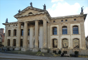 At Parks Road turn right and continue on the pavement to reach the crossroads at the Kings Arms.  Cross over and walk slightly to the left into Catte Street. The Bodleian Library is on the right, with the Sheldonian Theatre next to it, then the Museum of the History of Science. The Bodleian New Library is behind you. On your left is the Bridge of Sighs.