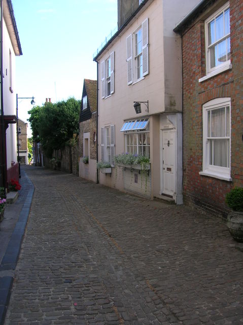[6] At main road (A283) turn left. Cross the road carefully opposite the Indian restaurant. Go ahead with church on right and turn left opposite the church gates down cobbled street (Lombard Street).
