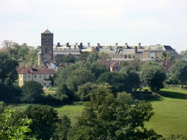(If you turn right here you can have a look at the interesting houses in North Street. You will also see a pedestrian entrance, through the cow yard and via the old servants' tunnel, to Petworth Park that you might want to use another time. The entrance to Petworth House is past the church that you will reach shortly.)