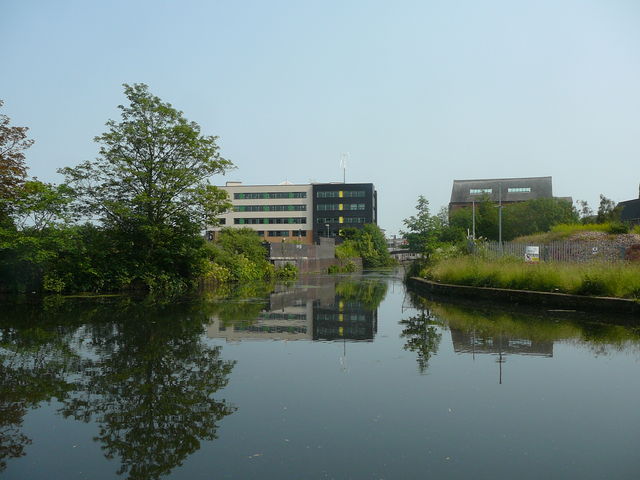 The fine new buildings at one of Leicester College's campuses. (D) They don't use the canal spur that reaches up to them.