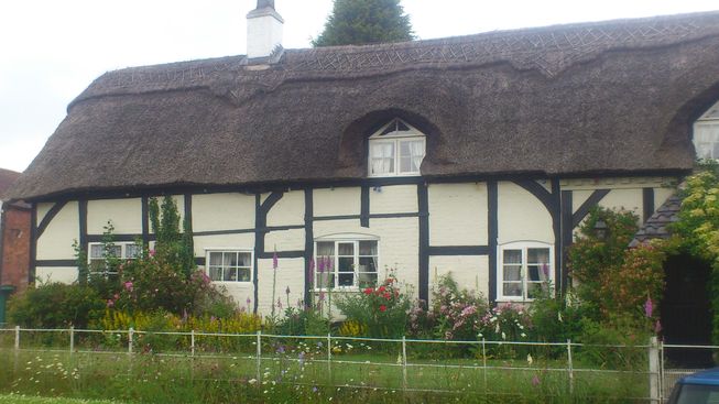 (D) Austrey is another large village with a fine dark church. The thatched Bird In Hand pub is a lovely sight, with a lovely octagonal 15th Century village cross in front of it. The cross at the top of the steps is a 19th Century restoration put there to commemorate the diamond jubilee of Queen Victoria, but the steps are original. There is a shop around the corner should you wish to stock up on supplies, or ice cream.