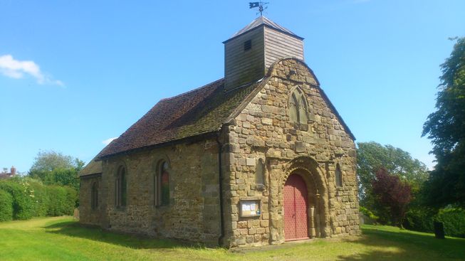 (B) Shuttington sits high on a hill on the side of the valley of the River Anker to the south. There are good views of Alvecote Pools down below. These were accidentally created by mining subsidence and are now a nature reserve and SSSI. There is a village shop to your left as you arrive and the Wolferstan Arms to your right has a nice outdoor seating area with views over the pools. The tiny 12th Century church is built with a nice orange grey stone and has an interesting west door, said to have been brought from nearby Alvecote Priory after it was demolished. In the churchyard is the grave of Thomas Spooner, once the fattest man in England, who weighed in at 40 stone 9lbs. (260 kg). Thomas was unable to walk, and had to go everywhere in a pony and trap. It is said his bulk once saved his life after he was stabbed in an argument. The knife failed to get through all the fat to reach his internal organs.