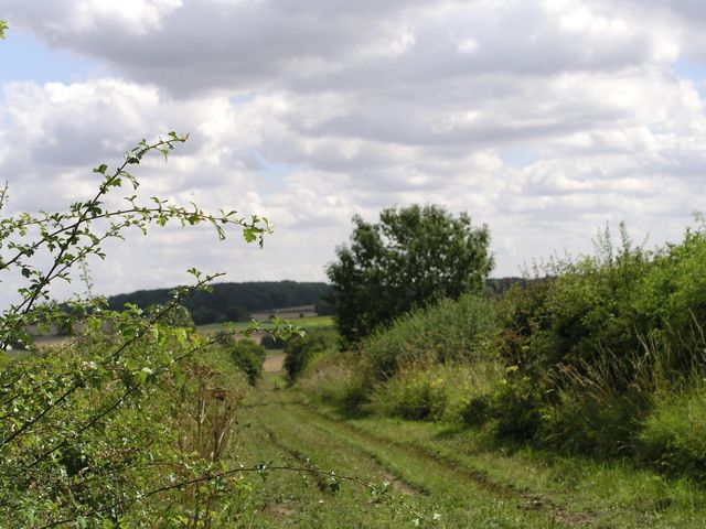 Go through the kissing gate and turn left and at once right between fields towards a wood. Continue ahead through a short section of the wood and then continue on a track with the wood on the left until you reach a concrete sugar beet pad at the end of the wood. Ignore the footpath turning right and continue on the same track which turns left. The wood is still on the left. The track turns left again and at this point the wood is again still on the left. You will discover that the wood is quite long but not very deep and that you have ended up “crossing” its depth. Where the track turns left, take the first turn right away from the wood towards the barns of Beaumont’s Hall on a track between intermittent hedges, keeping the barns on the left and passing a small pond and group of trees on the right - also ignore tracks going right.