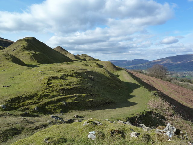 [1] You can access the canal towpath from the north side of the car park (SJ210426). Turn right alongside it towards Llangollen. When you reach the Wharf, leave the canal and cross the bridge over it to a T-junction. Continue ahead up the steps (note the Llangollen History Trail waymark). Follow the enclosed path heading uphill, crossing a drive en route. The path is easy to follow, being clearly signed for Castell Dinas Brân. On reaching a lane, carry straight on up the track to go through a metal kissing gate. Fork right and continue on up to an information panel, and then up the zigzag path to the top and the picturesque ruins of Castell Dinas Brân – a medieval castle sited within an Iron Age hillfort. There are wonderful views from here of Llangollen and the Dee Valley, the Llantysilio range, Berwyn Mountains and Eglwyseg escarpment.