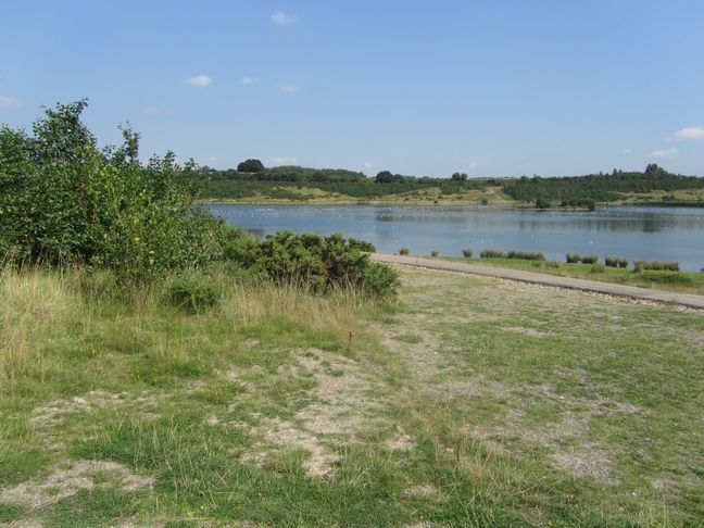 [4] Turn left then right at the footpath sign through a residential parking area to the lake. Turn right and follow the lakeside road. Turn right at the junction beyond the lake and bear left along the gravel path at the waymark post. Cross the road and turn left along the parallel path and keep straight on between fences where the road turns left.
