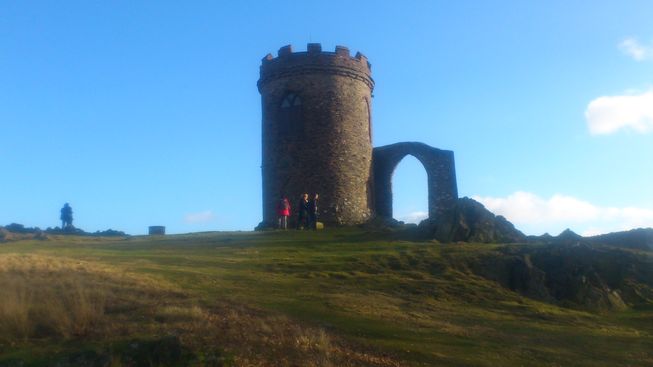 (A) Old John Tower is sited at what must be one of Leicestershire's finest viewpoints. There is a view finder nearby. It is a folly, built in 1784 by a local man, Thomas Sketchley, as a mock ruin. It was later converted by a 19th century Earl for use as a watch tower when training his racehorses in the park. Many people think the arch makes the tower look like a beer mug with a handle. But perhaps they are thinking more about their post walk drink!