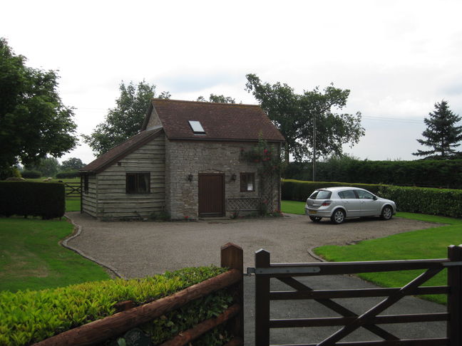 [1] From car parking on the roadside verge and facing the Malvern Hills, turn left along the road to a bend and turn left through the field entrance just after a cottage on your left. Follow the hedge on your left to the end of the field, turn right at the field corner and go through an access gap in the hedge on the left and follow the hedge on your right to a footbridge. Cross the footbridge and bear diagonally right uphill to a clump of trees and a barn to your front to reach a farm gate onto a road. Turn right down the road and just after a very, very small cottage on your left, turn left down a field access track and pass through three farm gates. In the following field continue forward, with the hedge and pond on your right, to a farm gate. In the next two fields follow the hedge on your left to reach a farm gate on your left. Once through this gate, follow the hedge on your right to a farm gate entrance to a farm yard at Carpenter's Farm. Go through the farm yard and follow the driveway (pond on your left) through a couple of bends and uphill to a road (B4208).