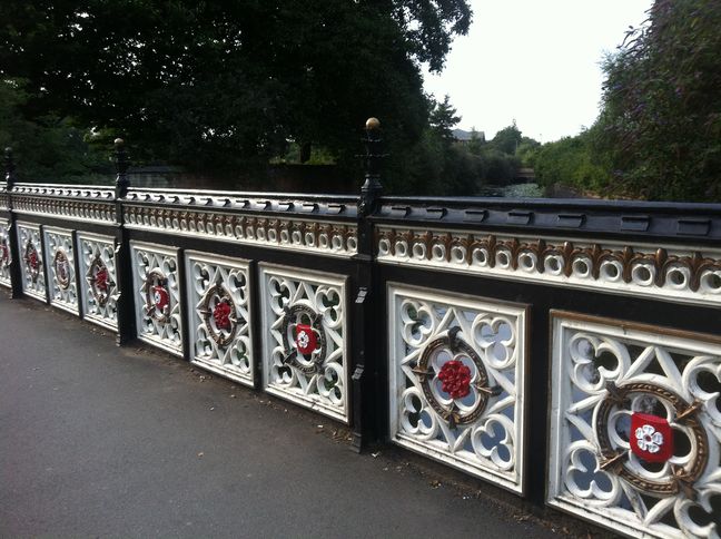 The Bow Bridge. Historically, King Richard III rode to battle across the old Bow Bridge (demolished 1861) and according to legend, his spur struck a stone on the bridge as he crossed it. An old woman in the crowd is said to have prophesised the Kings defeat and that his head would strike the same stone on the way back. The ironwork of today's bridge reflects the white rose of York, the Tudor rose, the white boar emblem and Richard's motto 'Loyaulte me Lie' (Loyalty binds me).