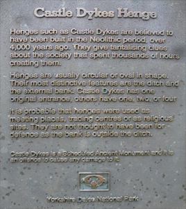 (F) Castle Dykes Henge consists of a flat circular area more than 60 metres in diameter with a bank and ditch around it. It may at some time have contained a ring of upright stones. For an exhaustive explanation see http://megalithix.wordpress.com/2010/12/20/castle-dykes-aysgarth/